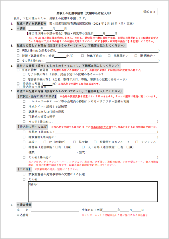 試験当日の配慮を希望する方の配慮申請について(第4回国家試験)