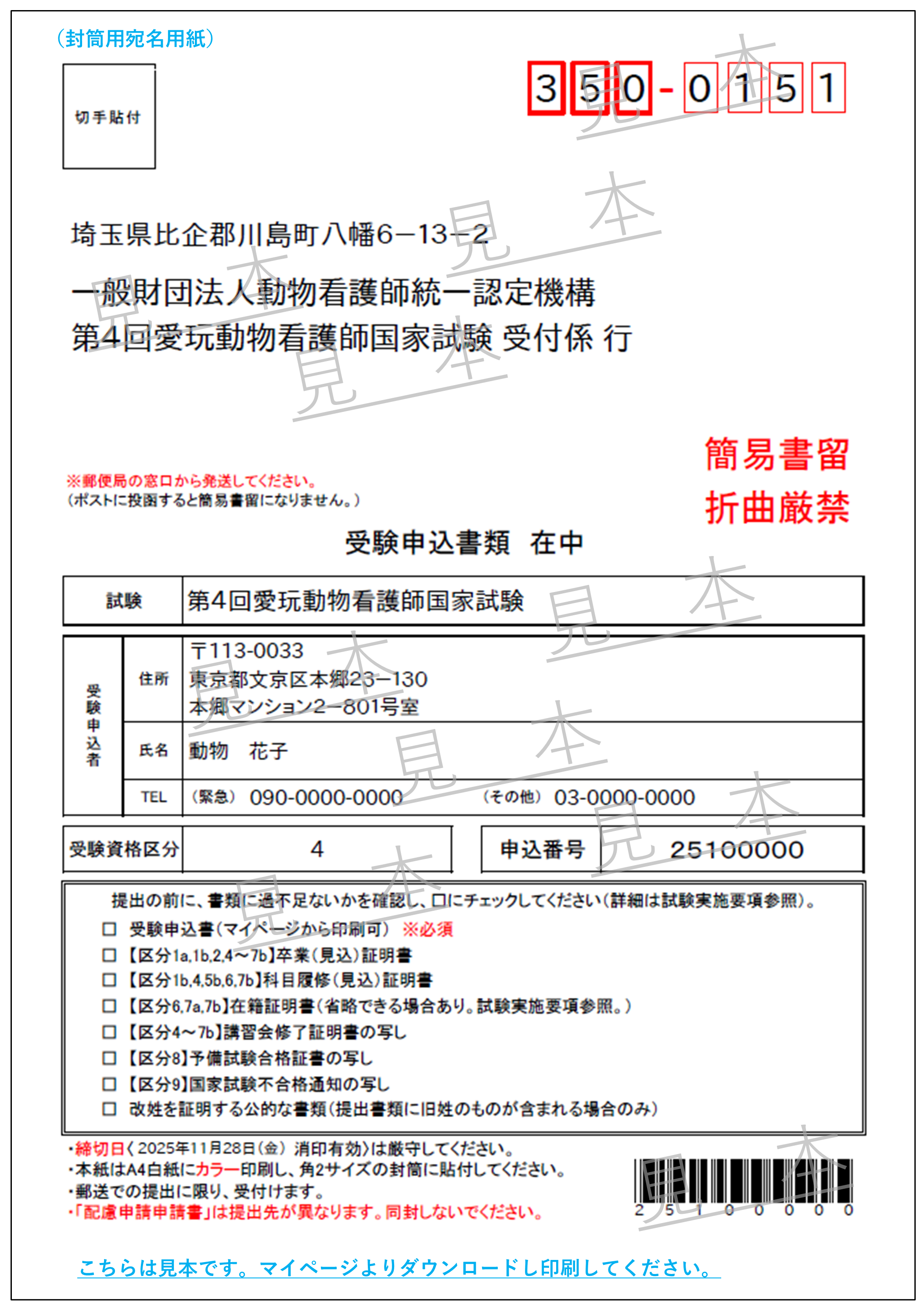 ・簡易書留の控えは、受験票の交付を受けるまで保管すること。