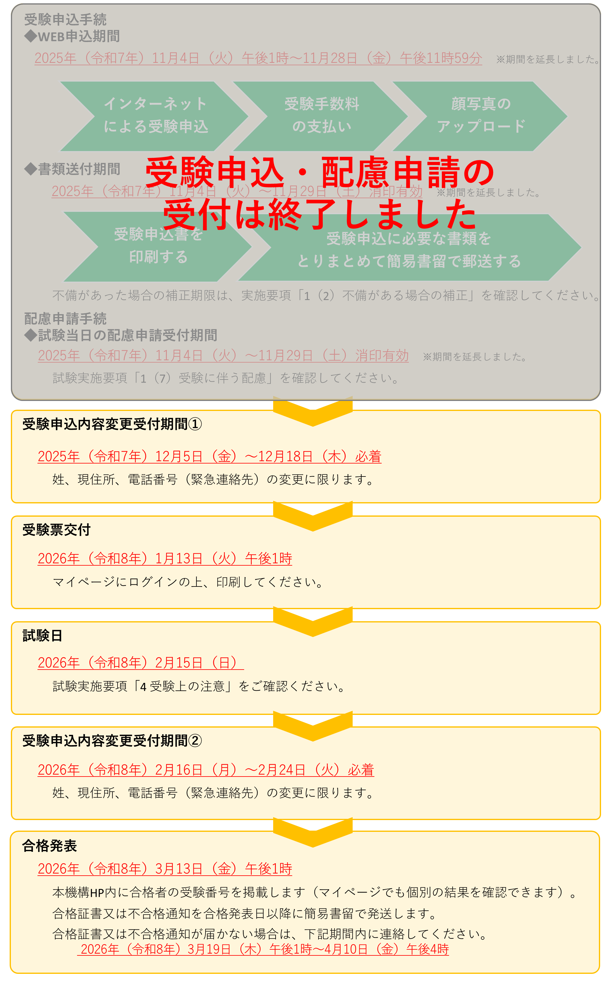 - 2025年12月4日 「受験申込内容の変更受付について」を公開いたしました。